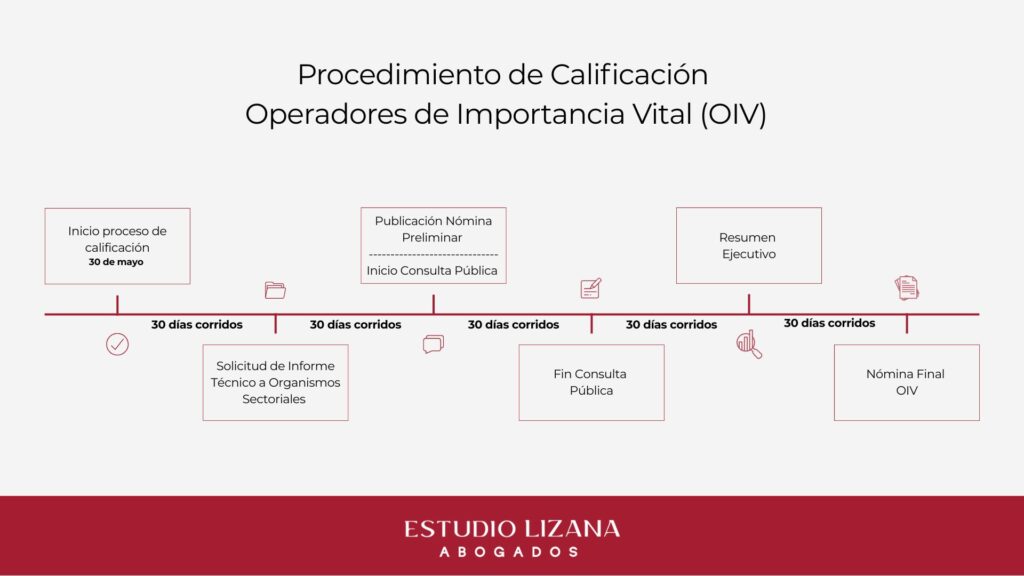 La calificación como OIV se inicia mediante resolución, tras la cual la ANCI recaba información tanto de los reguladores sectoriales, así mismo, podrá solicitar la entrega voluntaria de antecedentes a los propios privados cuya calificación como OIV se encuentre en revisión. Posteriormente, se elabora una nómina preliminar de posibles OIV, la que se somete a consulta pública. Este mecanismo busca no sólo transparencia, sino también asegurar que empresas eventualmente calificadas puedan exponer información técnica, comercial o estratégica que permita dimensionar adecuadamente su rol y el impacto que tendría su inclusión en la categoría de OIV. Finalmente, tras la evaluación de las observaciones, se dicta una resolución definitiva, que tiene una vigencia de tres años, salvo que circunstancias extraordinarias justifiquen una revisión anticipada.